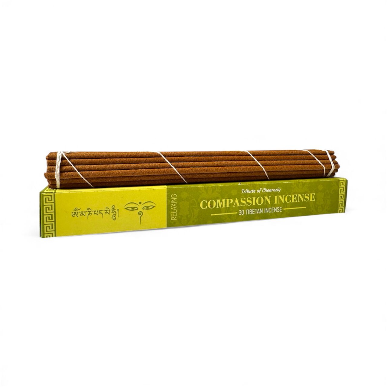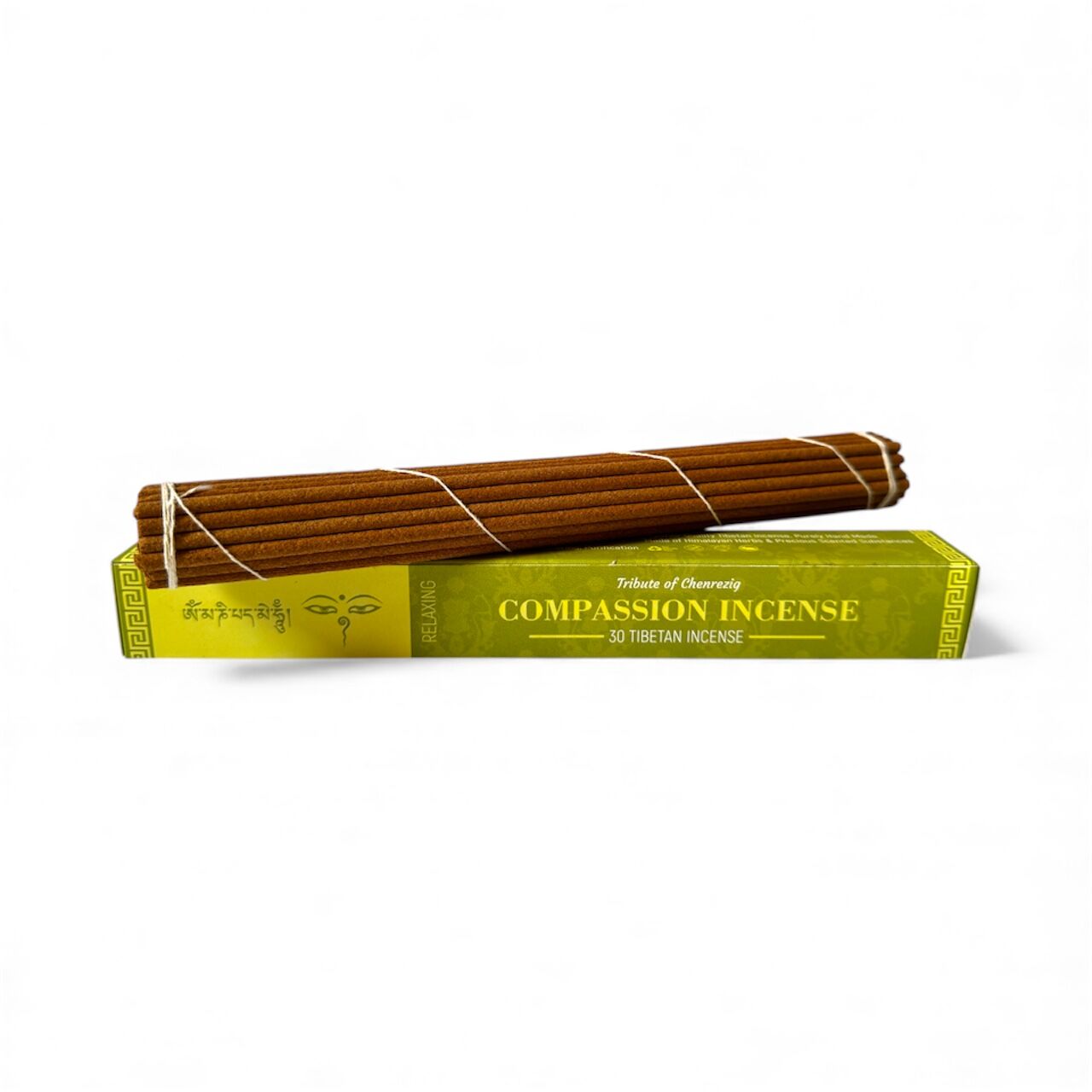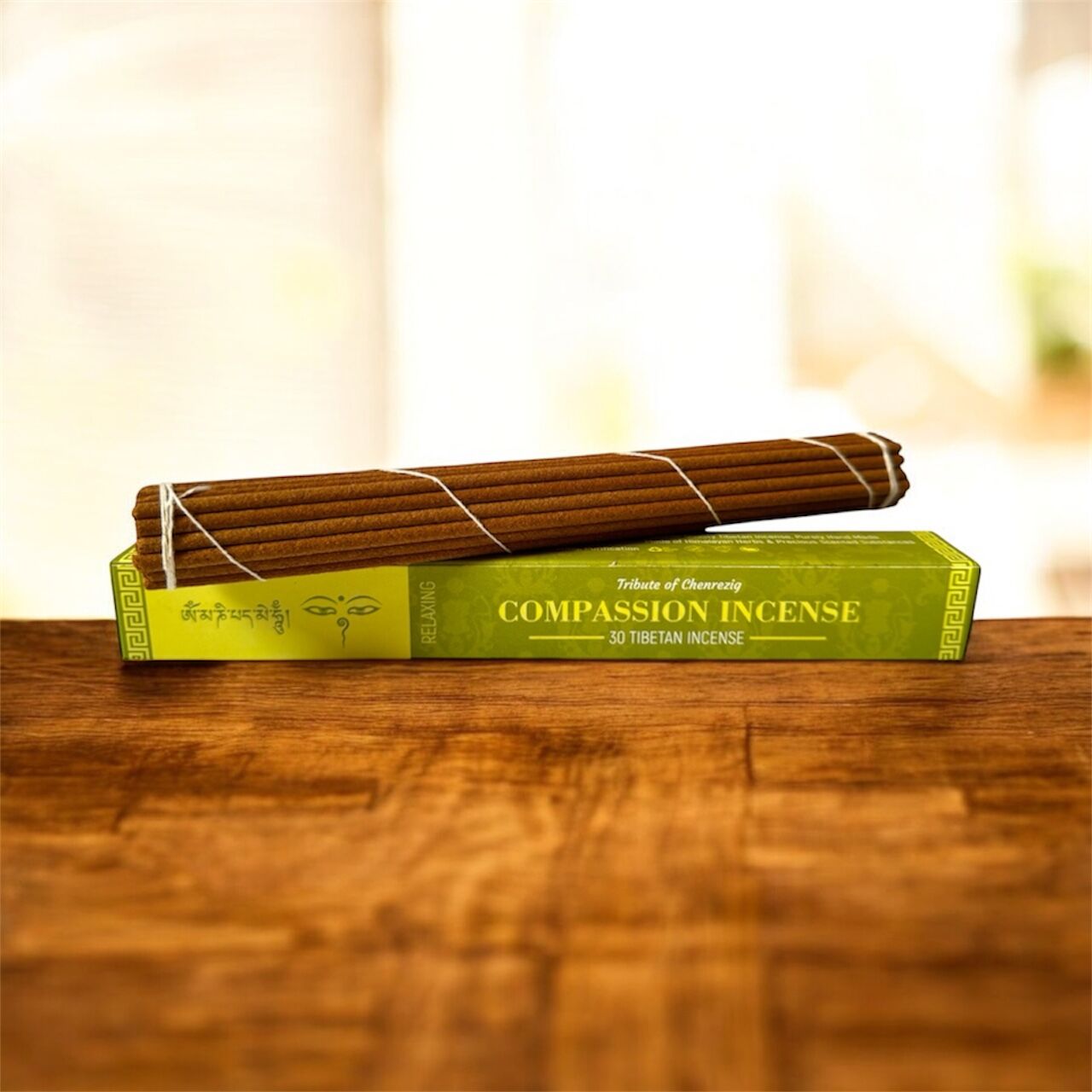 This Compassion incense is specially made for use as an offering to the Chenrezig Buddha of Compassion it helps us to increase our power to attain love and compassion and delicate fragrance creates a peaceful atmosphere and stimulates a feeling of wellbeing.