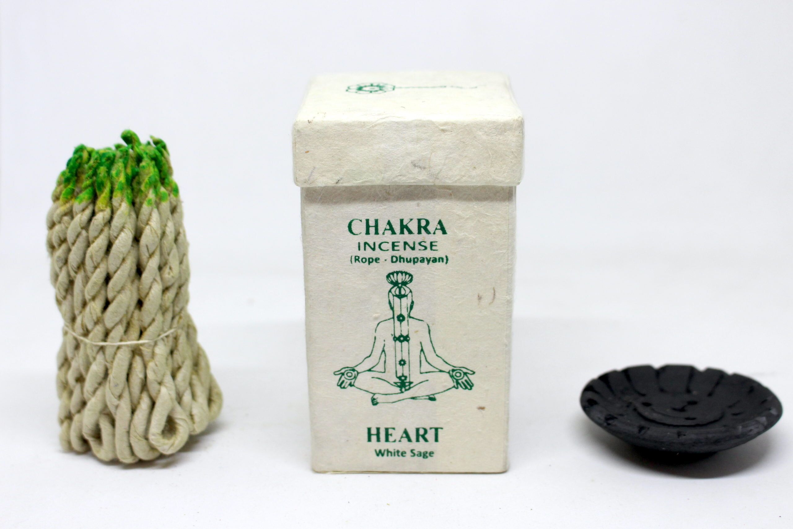 The benefit of burning Heart Chakra Rope incense is that it helps to increase colors in our life with compassion, love and beauty. The packaging is done with Nepali handmade paper. It comes with a ceramic lotus burner. There are altogether 7 different flavors of Chakra Rope Incense. It is 100% Handmade in Nepal.