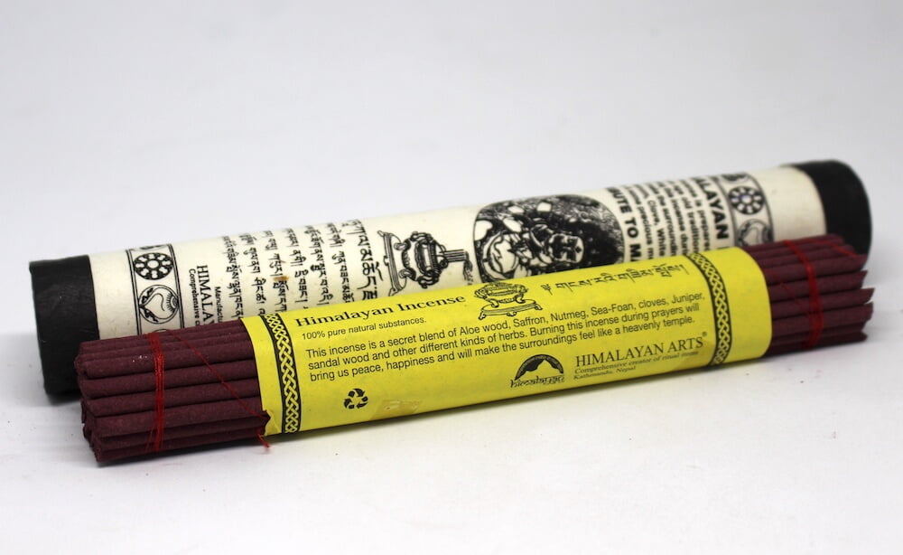 This Mahakala Himalayan Incense is high-quality incense that is prepared with the utmost care and strict compliance with an age-old traditional method following the recipe found in the ancient texts. Burning this incense during prayer will bring us peace, happiness, and make the surroundings feel like a heavenly temple.
