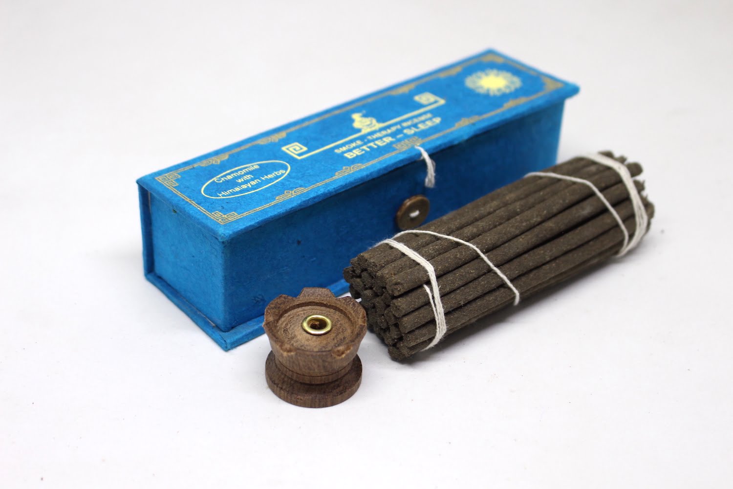 This is the Smoke Therapy Chamomile Better Sleep Incense made with a blend of special herbs and ayurvedic formula helps promote better and deep sleep making sure that the body is well rested. It has been formulated with various ayurvedic herbs, resins and essential oils along with rosemary with the main ingredient that is known to get rid of negative energy, increases creativity, awakens the heart & soul, and can increase sensitivity. The incense also comes with a small wooden incense stick holder inside.