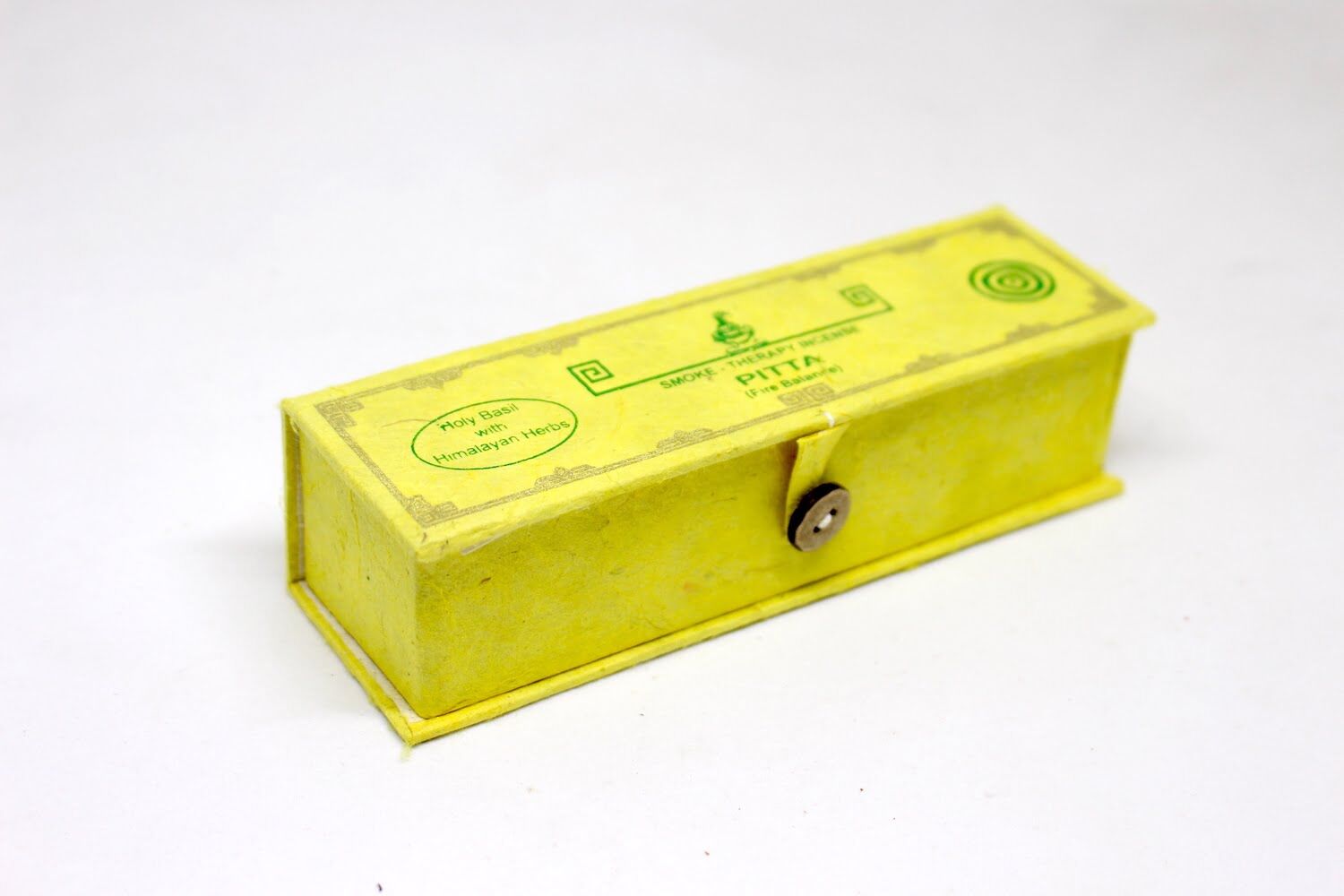 This is the Smoke Therapy Holy Basil Pitta Incense made with a blend of special herbs and ayurvedic formula helps you to cool, calm and relax the pitta dosha. It has been formulated with various ayurvedic herbs, resins and essential oils along with rosemary with the main ingredient that is known to get rid of negative energy, increases creativity, awakens the heart & soul, and can increase sensitivity. The incense also comes with a small wooden incense stick holder inside.