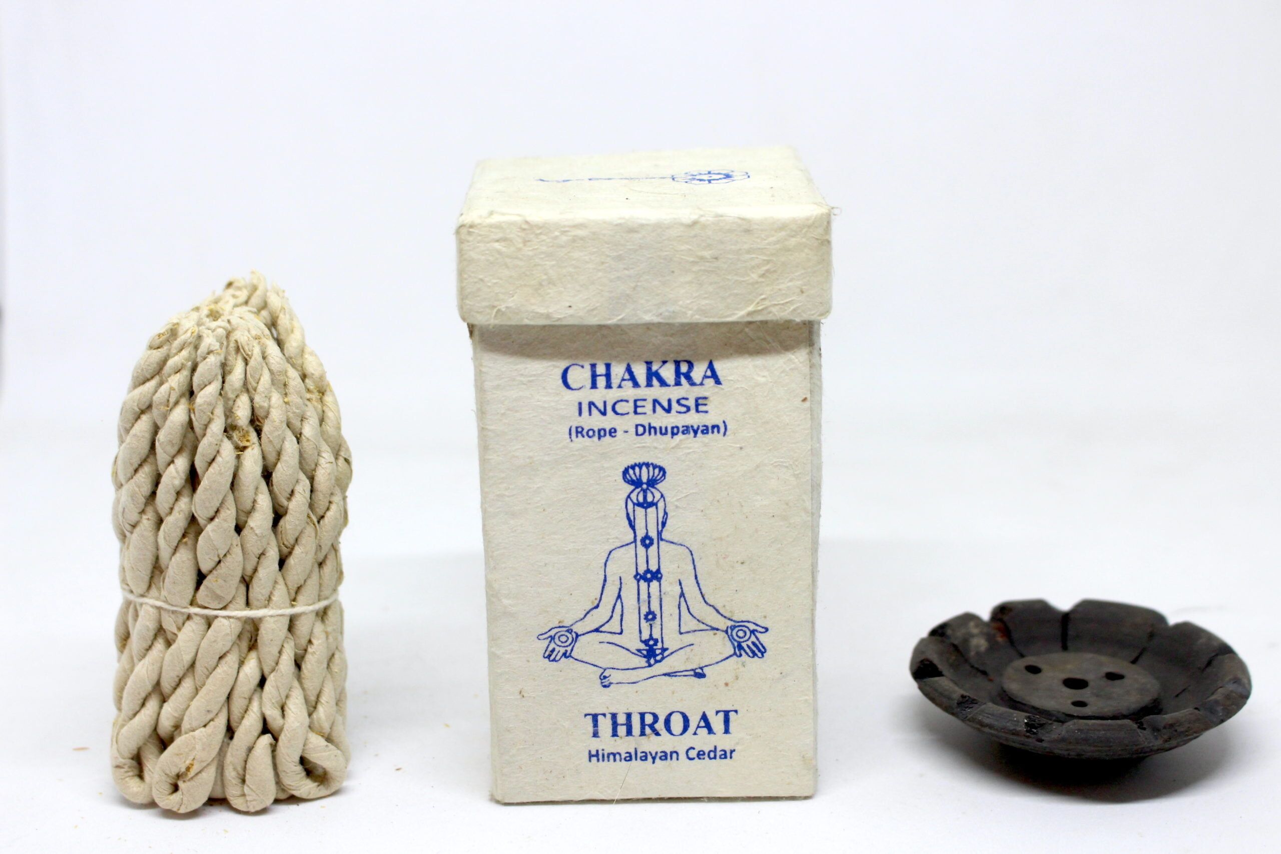 The benefit of burning Throat Chakra Rope incense is that it helps to increase communication and speak inner truth. The packaging is done with Nepali handmade paper. It comes with a ceramic lotus burner. There are altogether 7 different flavors of Chakra Rope Incense. It is 100% Handmade in Nepal.